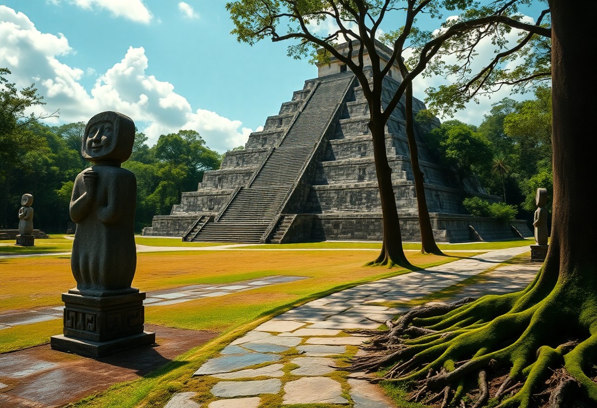 2. The Large Plaza: A central gathering area encircled by temples, featuring intricate stone carvings that narrate the stories of the Maya people.