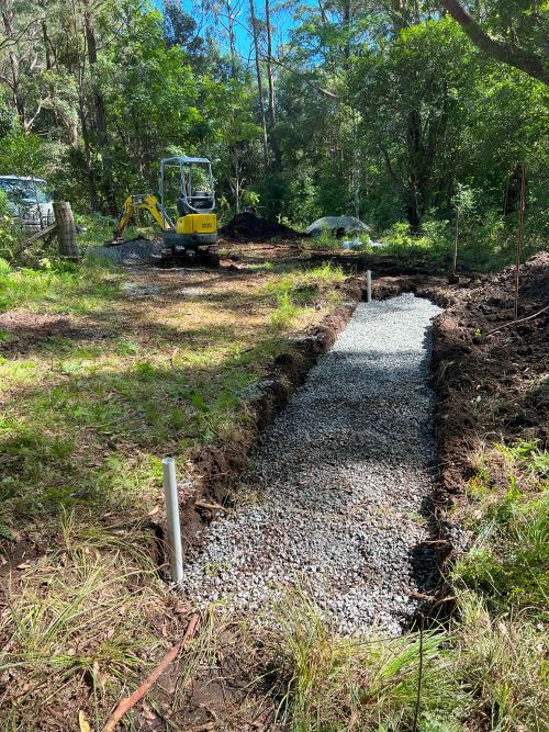 As groundwater accumulates in the surrounding soil, it naturally flows into the gravel trench, enters the perforated pipe, and is redirected away to a designated safe discharge point. This system operates efficiently below ground level and does not depend on visible grates or channels, making it particularly advantageous in clay-heavy soils, which are prevalent in Wollongong and the wider Illawarra region.